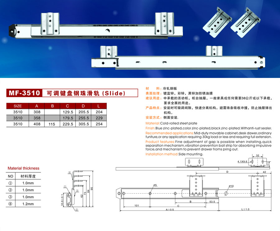 MF-3510可調(diào)鍵盤鋼珠滑軌