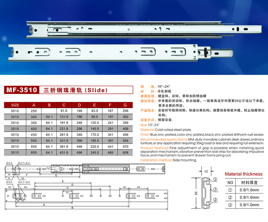 MF-3510三折鋼珠滑軌